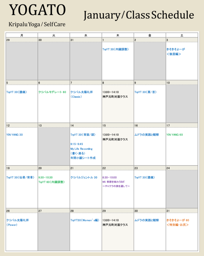 今月のYOGATOスケジュール